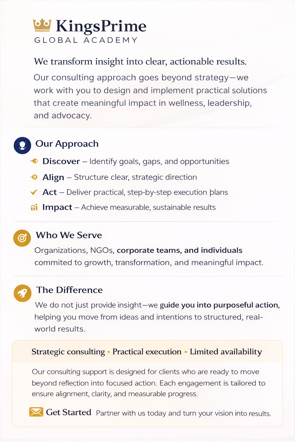 KingsPrime’s focus on emotional intelligence and wellbeing transformed how I approach decisions, work, and relationships. The experience was thoughtful, grounded, and genuinely empowering.